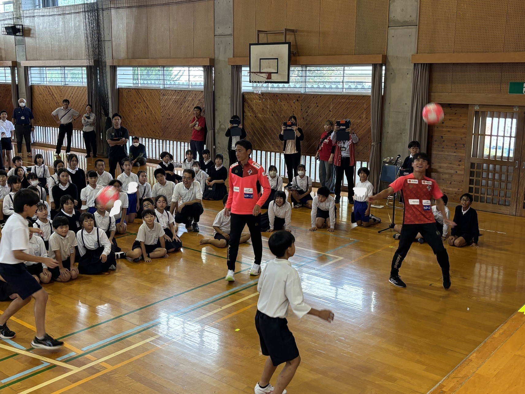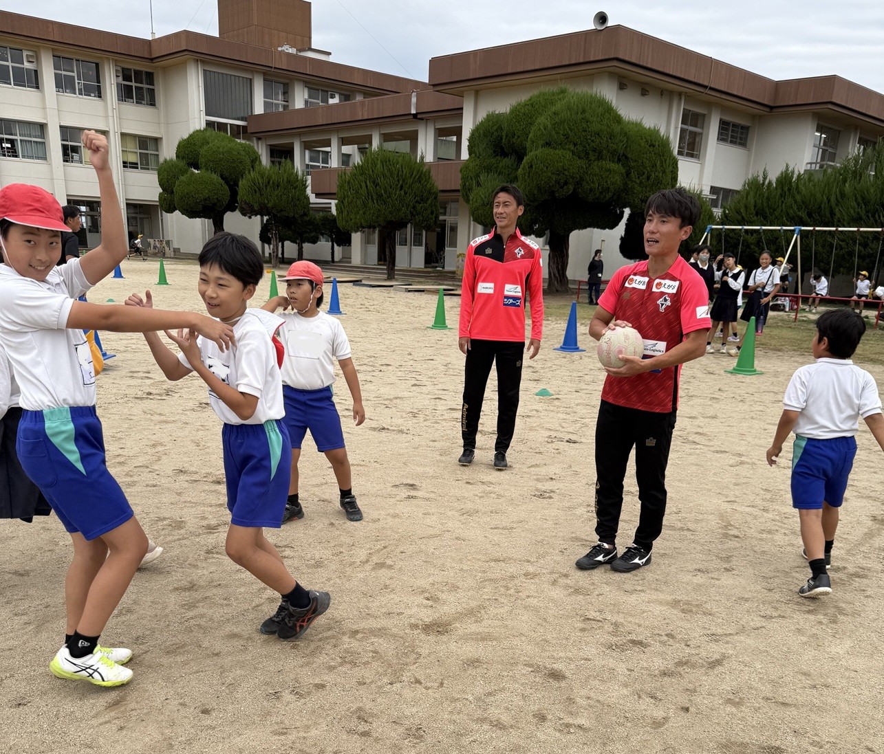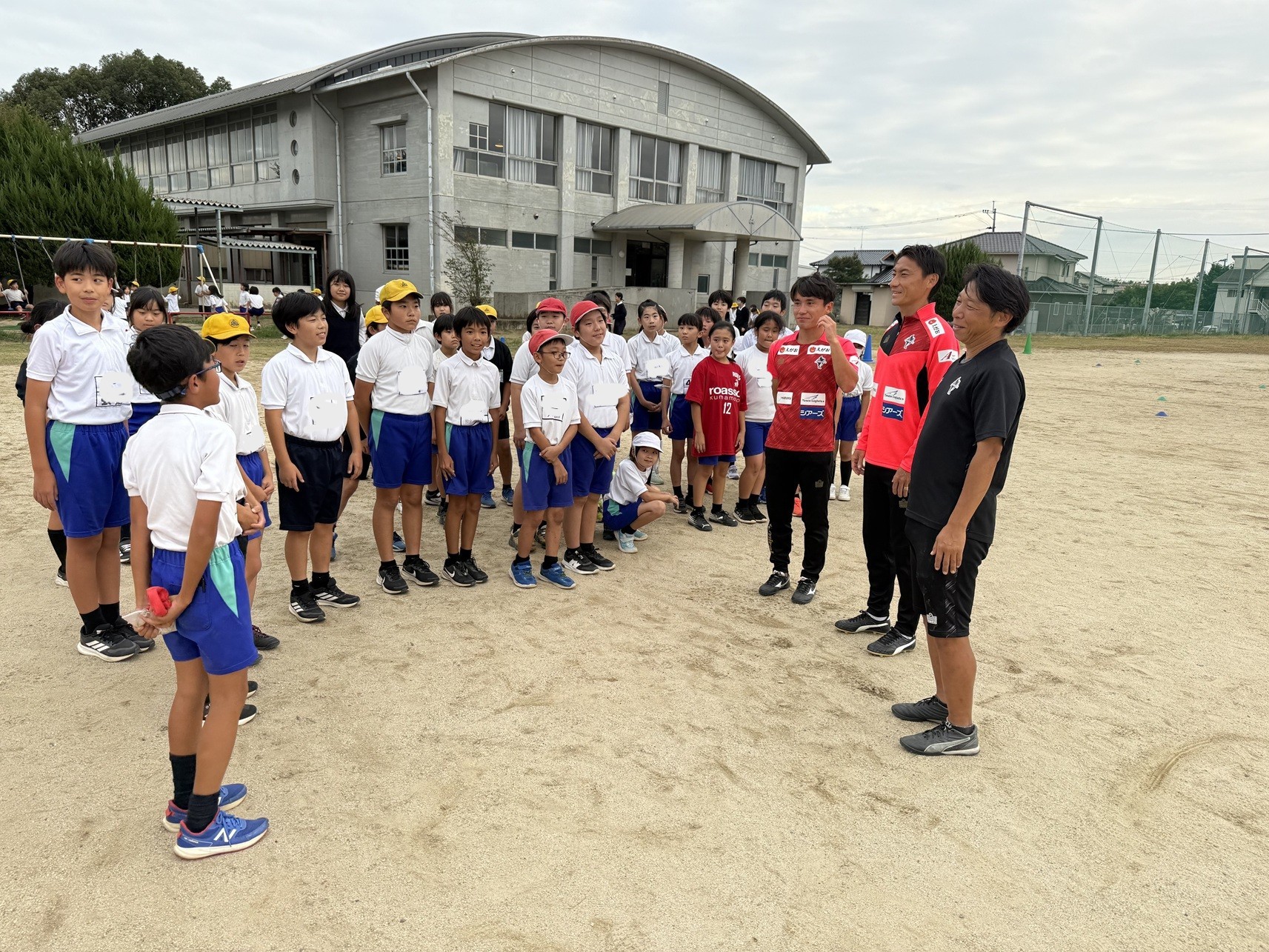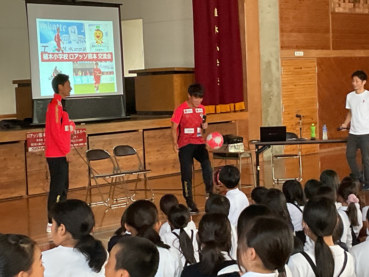 10月23日(木)、熊本市立植木小学校へ黒木晃平選手、上村周平選手が訪問し、3年~6年生の児童のみなさんと交流を行いました。