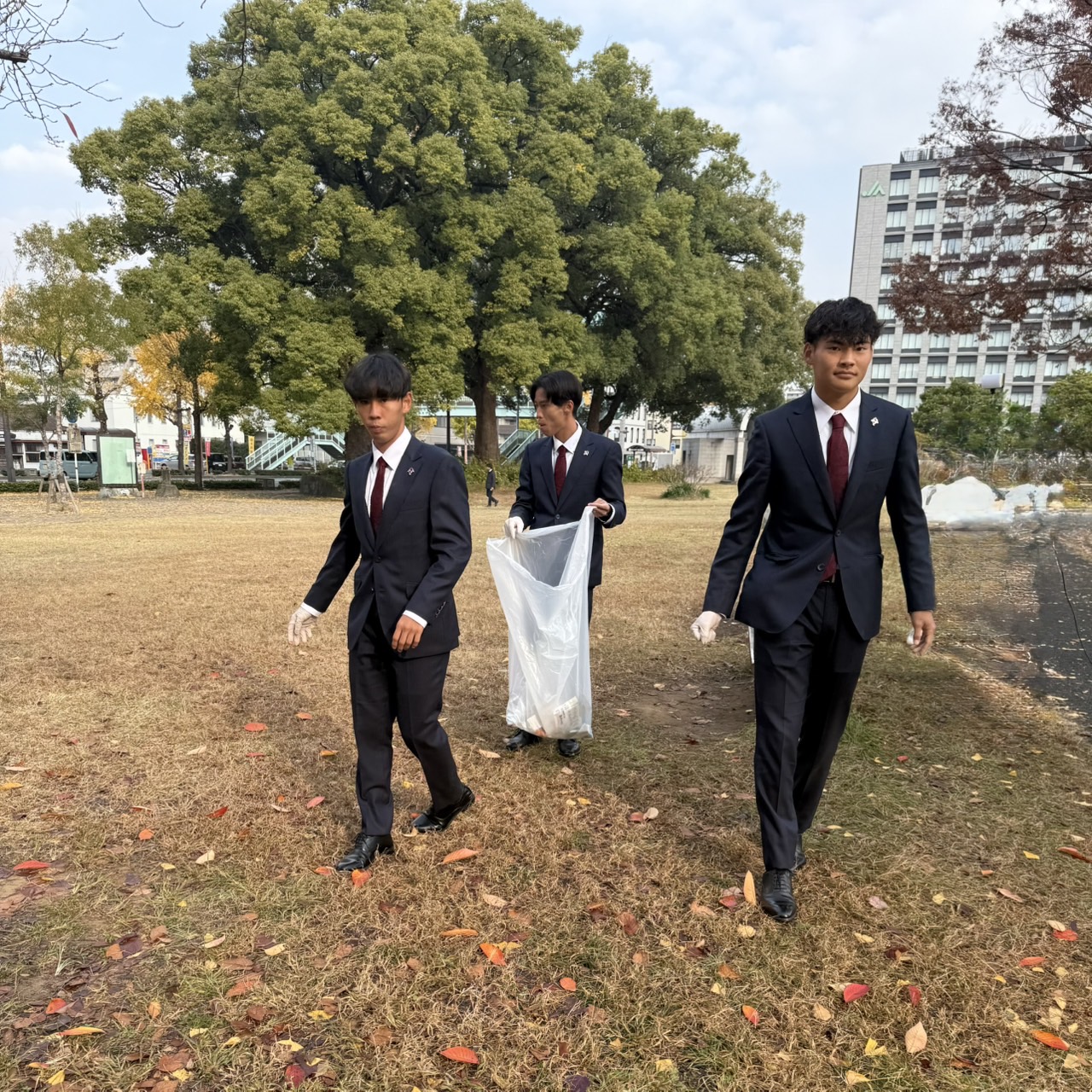 初日は前日に大忘望年祭が開催された会場の白川公園の見回りとゴミ拾い、熊本中央警察署に御礼の挨拶で訪問しました。