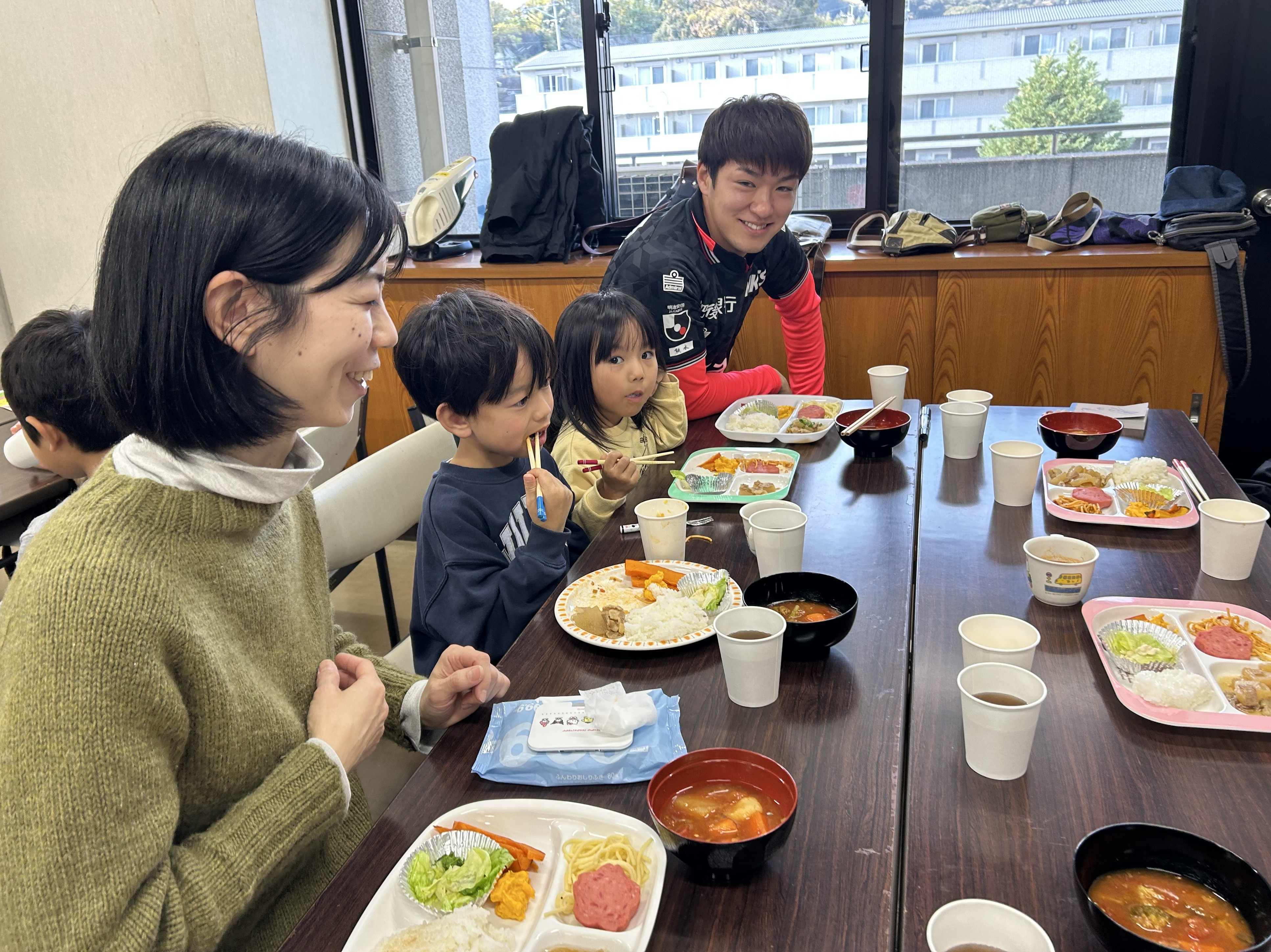 また食料贈呈と併せて、食堂を利用する子どもたちと選手が一緒に食事をするなどの交流事業を行う事も本事業の目的としております。