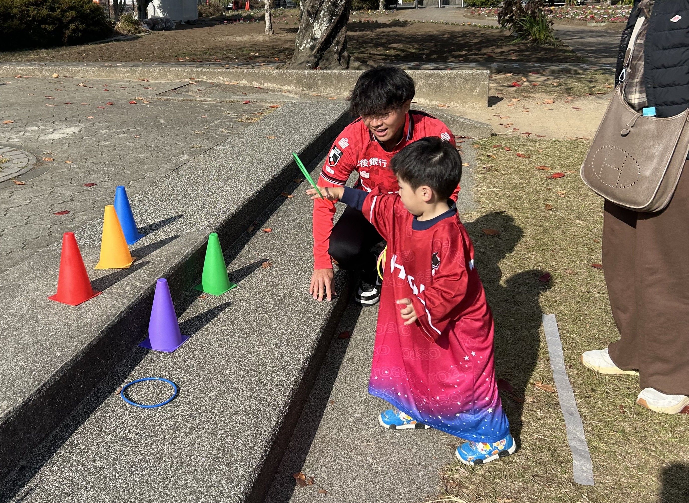 佐藤選手はサッカー担当。楽しく一つのボールを追いかけ、寒さも忘れて汗をたくさんかいている子ども達のえがおが印象的でした。