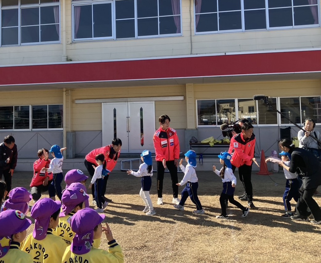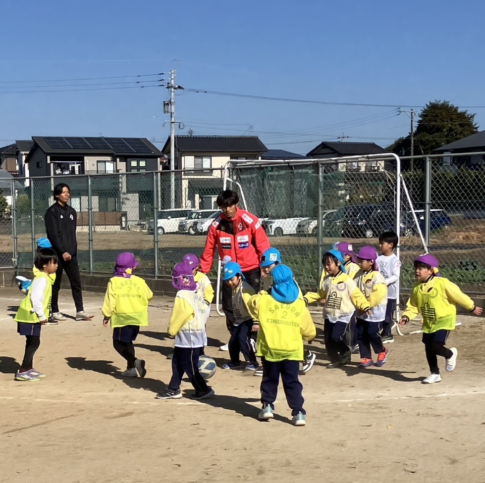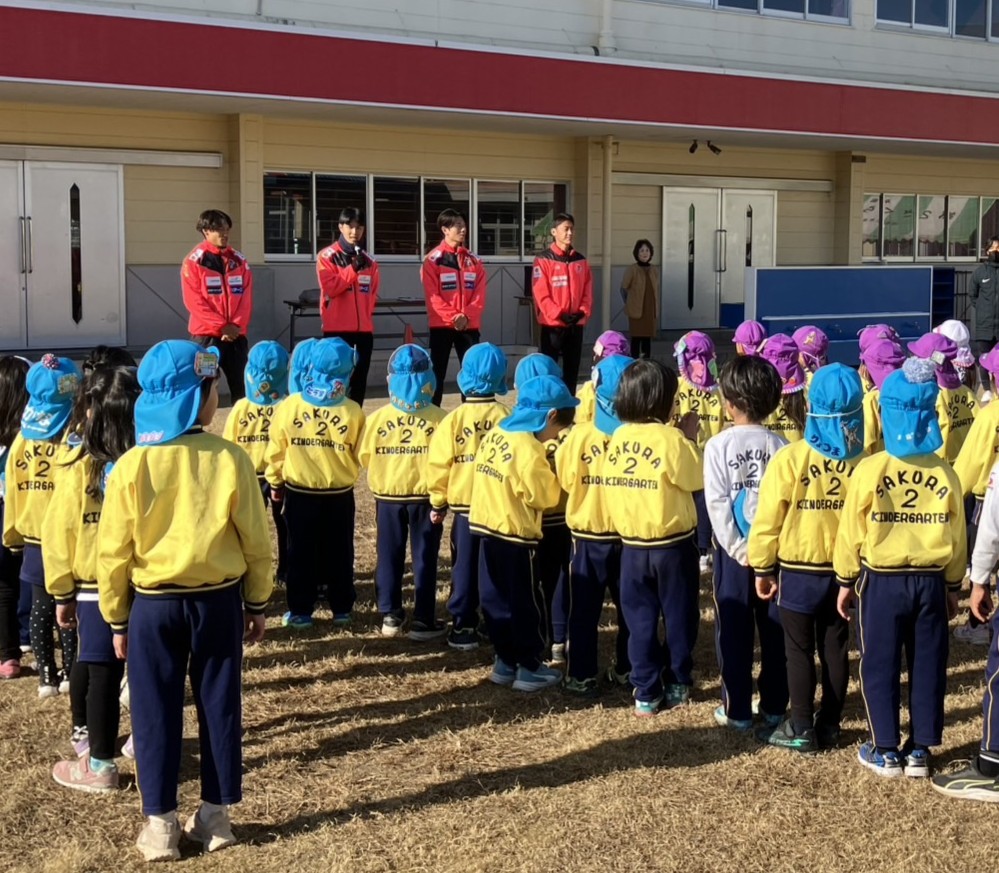 12月9日(火)第2さくら体育幼稚園にてサッカー教室を行い、普及コーチ、竹本雄飛選手、大本祐槻選手、三島頌平選手、黒木晃平選手が参加しました。