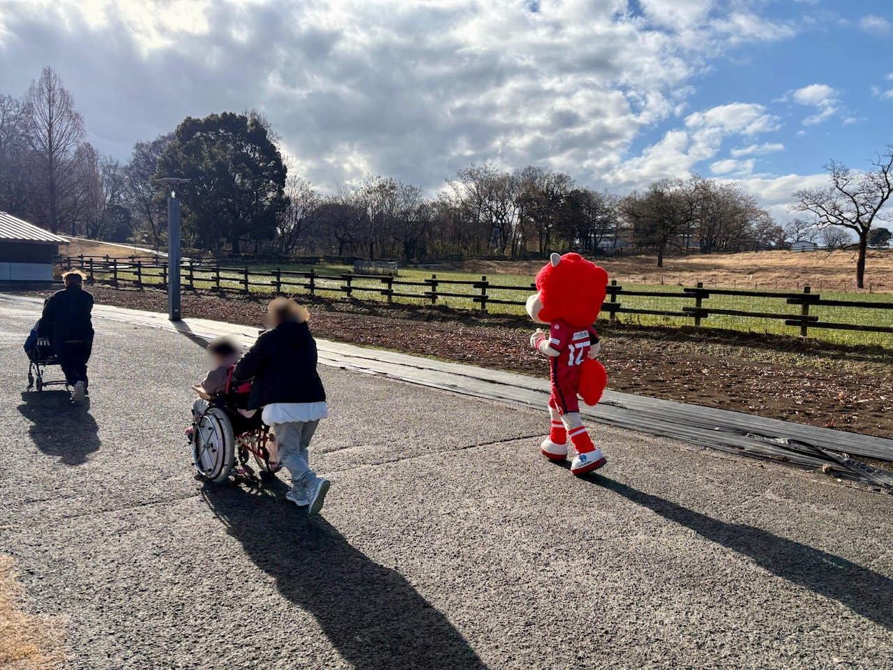 終了後は公園内にいた方々との交流を楽しみました。ロアッソ熊本のユニフォームやTシャツ、グッズを身に着けている方も見られ、ロアッソくんもとても喜んでいました。