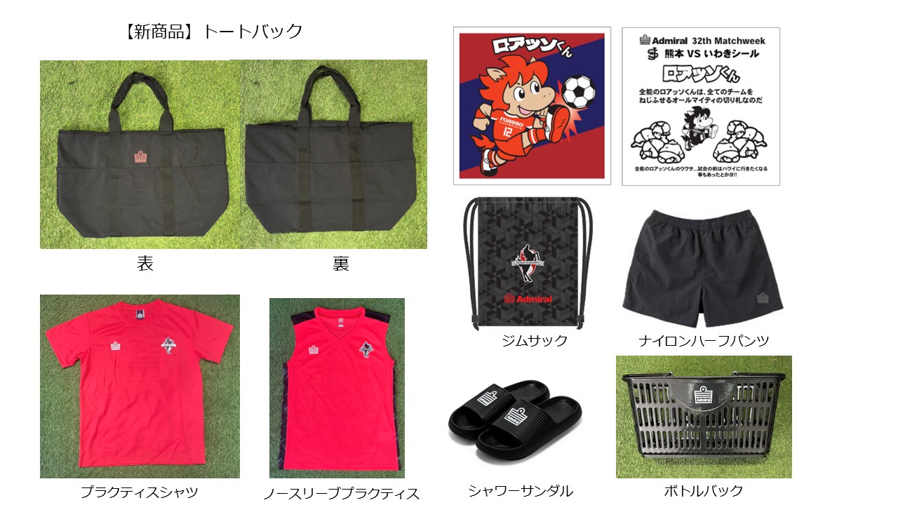 これまで販売いたしましたロアッソくんTシャツやトートバックなどの販売も行っております。