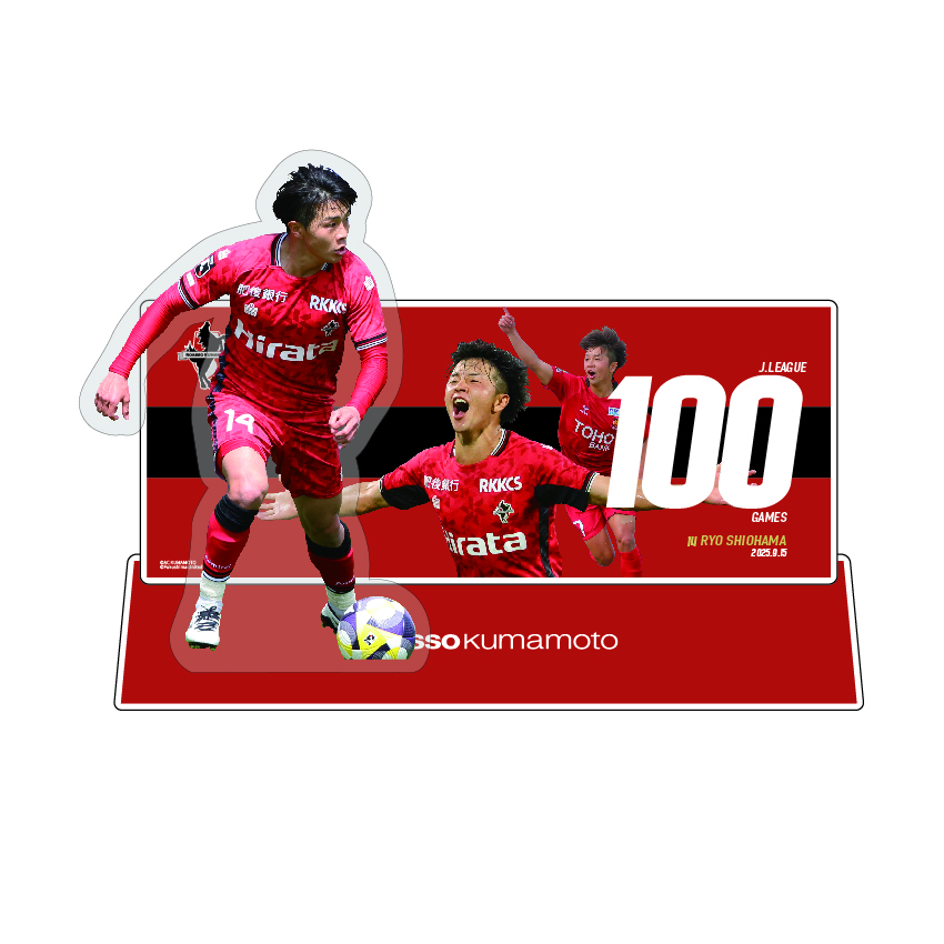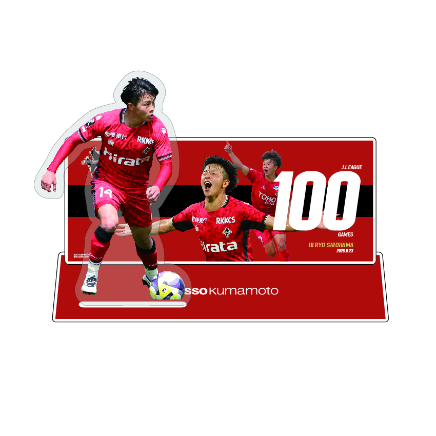 2025年8月23日(土)明治安田J2リーグ第27節 RB大宮アルディージャ戦において、塩浜 遼選手がJリーグ通算100試合出場を達成しました。 その功績を記念してメモリアルグッズの受注販売を開始いたしますので、お知らせいたします。