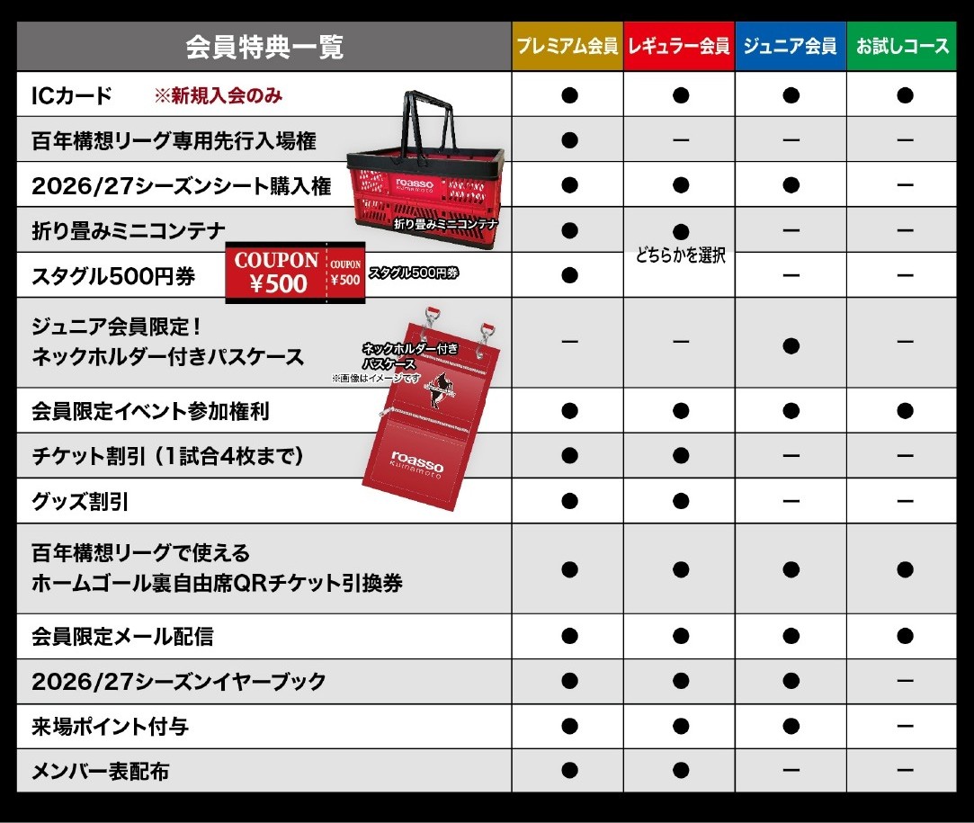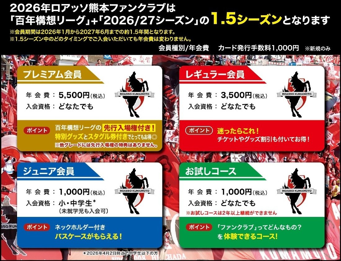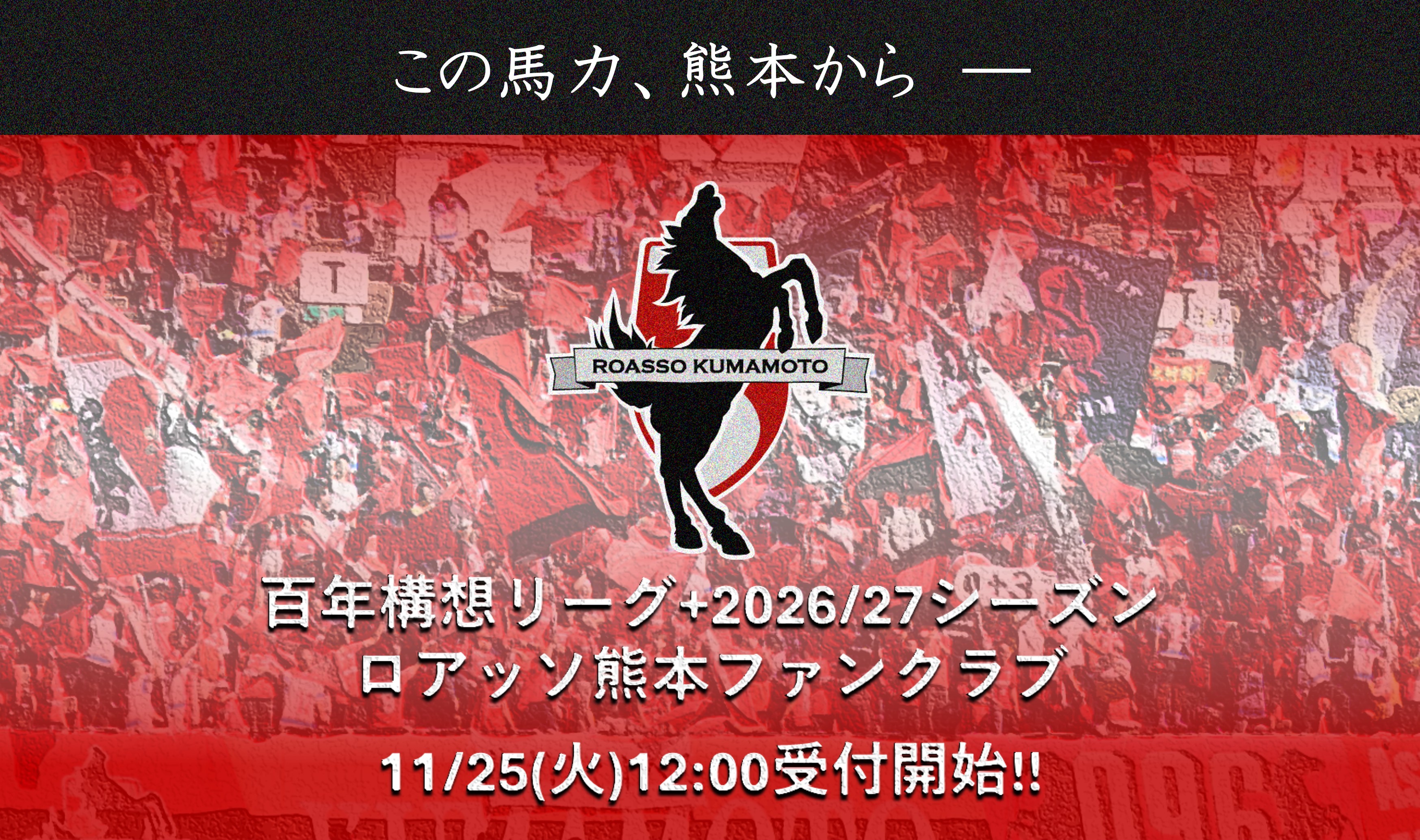 百年構想リーグ+2026/27シーズンロアッソ熊本ファンクラブ販売概要についてお知らせします。