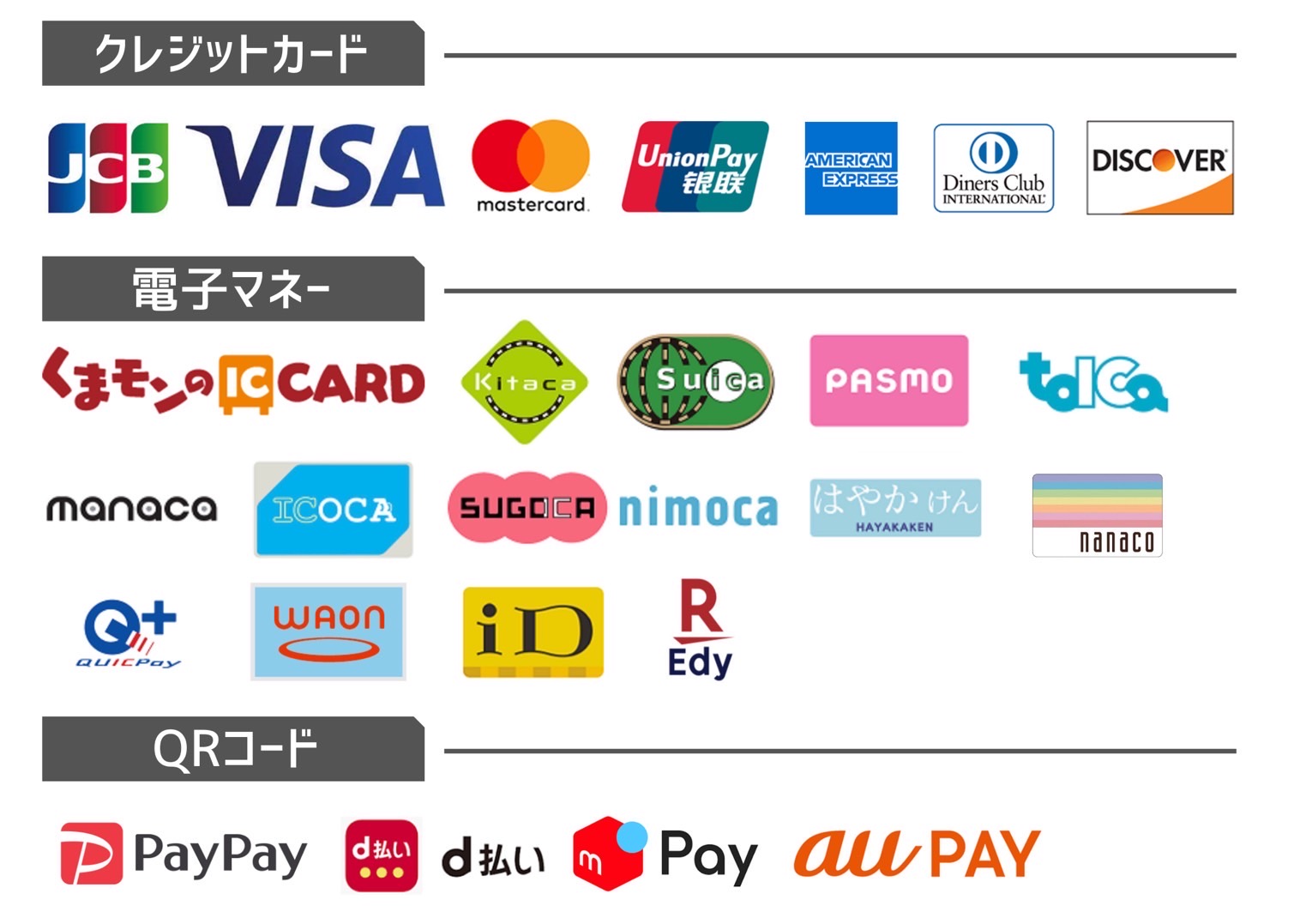 ・スマホ決済:PayPay、d 払い、au PAY 、メル Pay、楽天 Pay