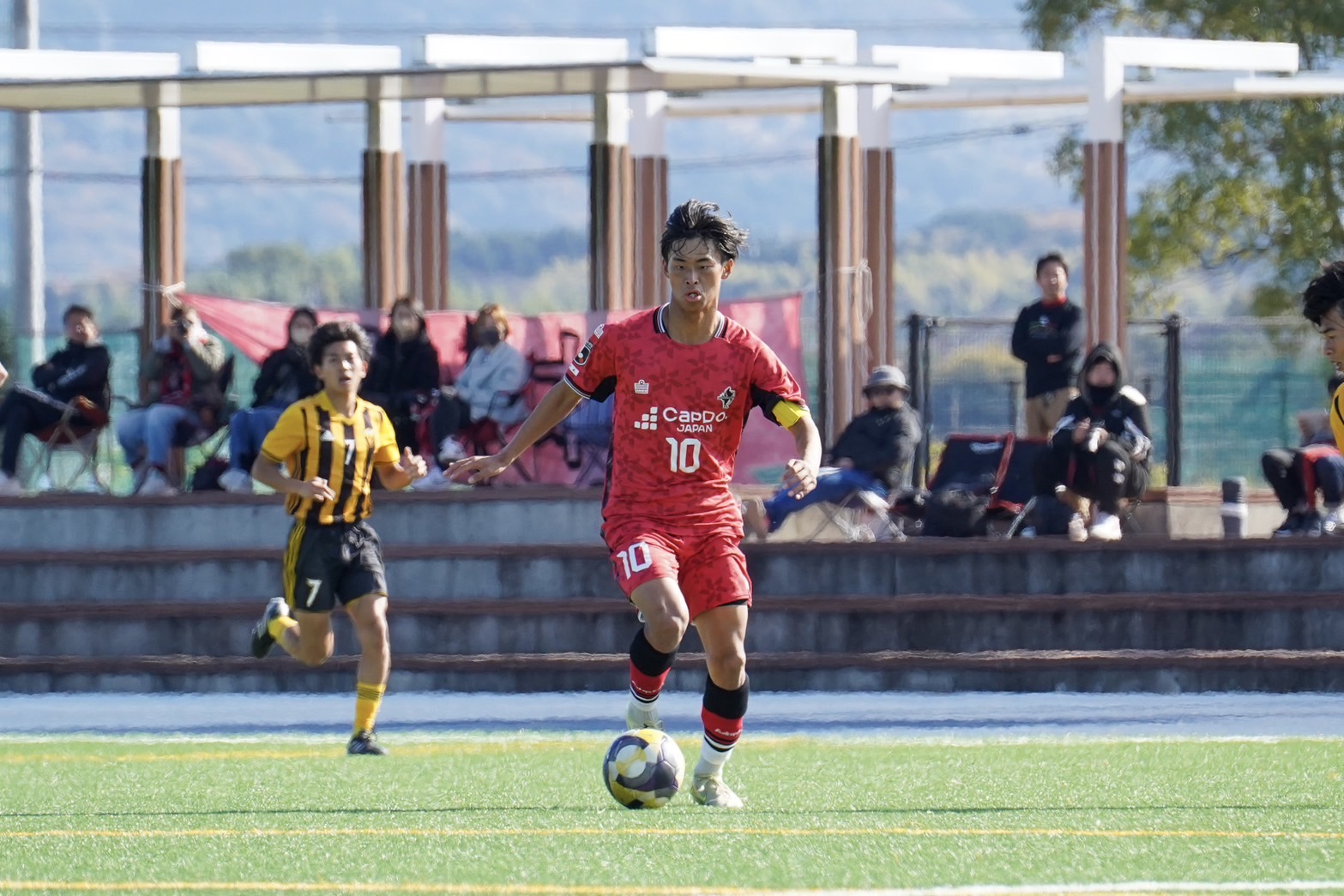 前半23分、8番・麻生暖琉選手が幸先良く先制点を奪う。切り替えの早い守備から主導権を握り続けるも、追加点には至らず 1-0 のまま前半終了。