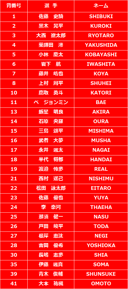 ・選手ネーム&ナンバー