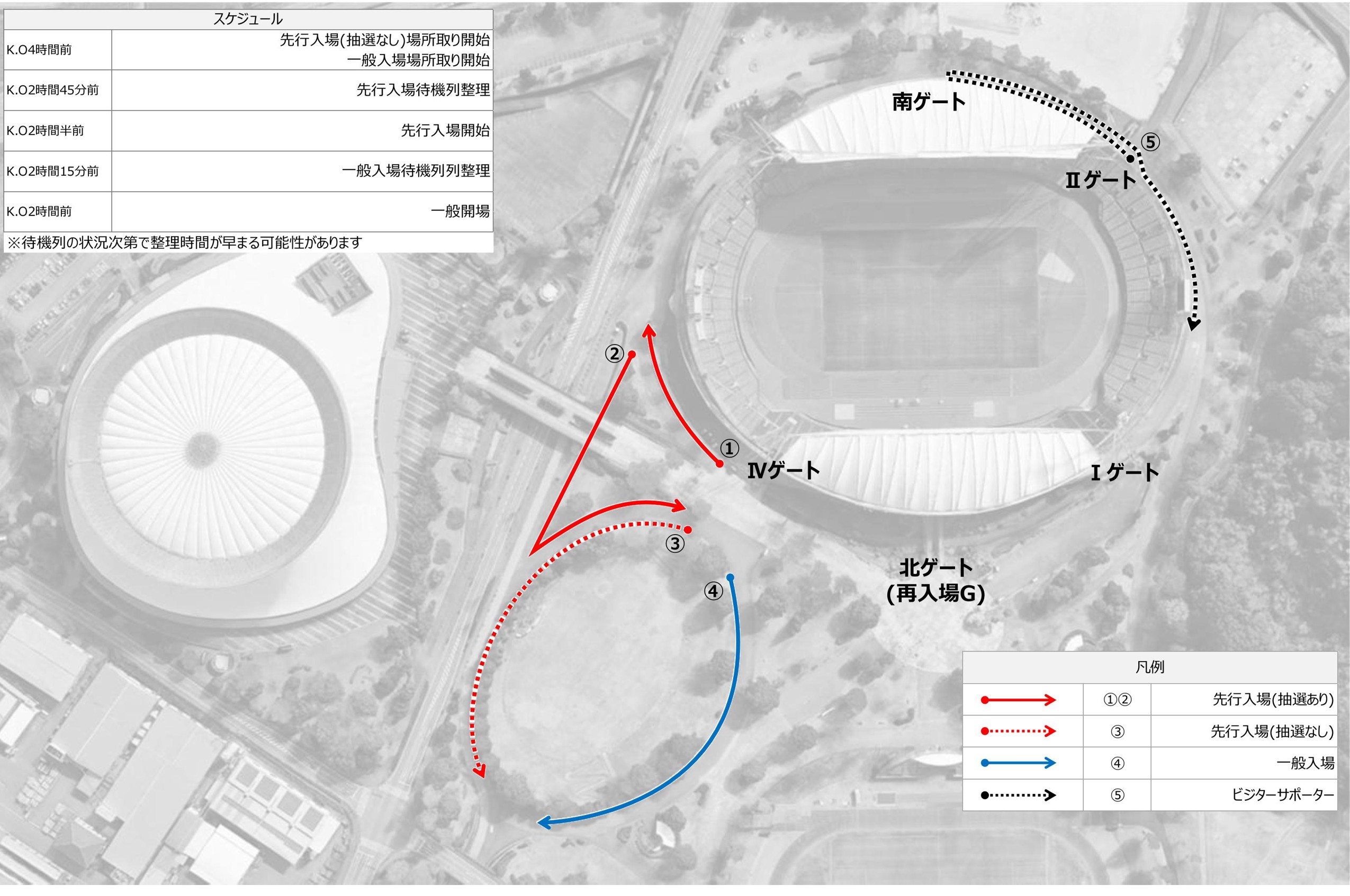 ※ミックス席でご観戦の方は4ゲートからもご入場できます。4ゲート側の一般入場の待機列にお並びください。