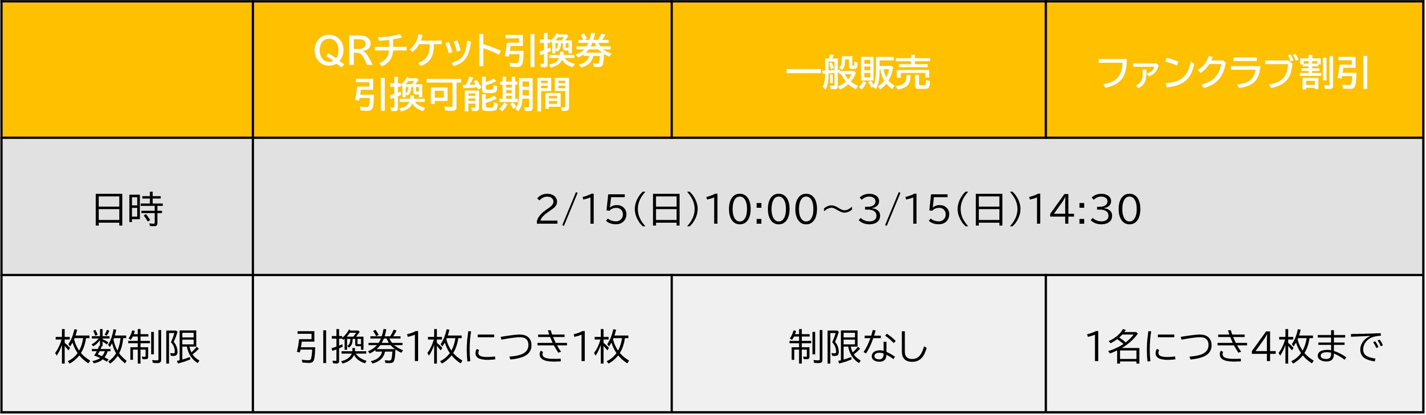 ・購入されたチケットの返品、交換は一切出来ませんので、席種席番や価格をよくお確かめのうえご購入ください。