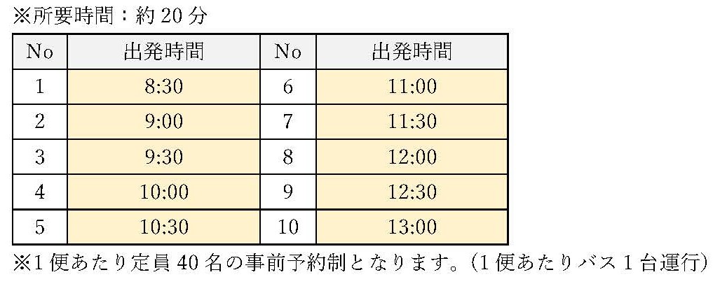 ※1便あたり定員40名の事前予約制となります。