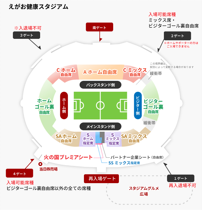 メインスタンド側での観戦をご希望の場合はSA自由席をご購入ください。